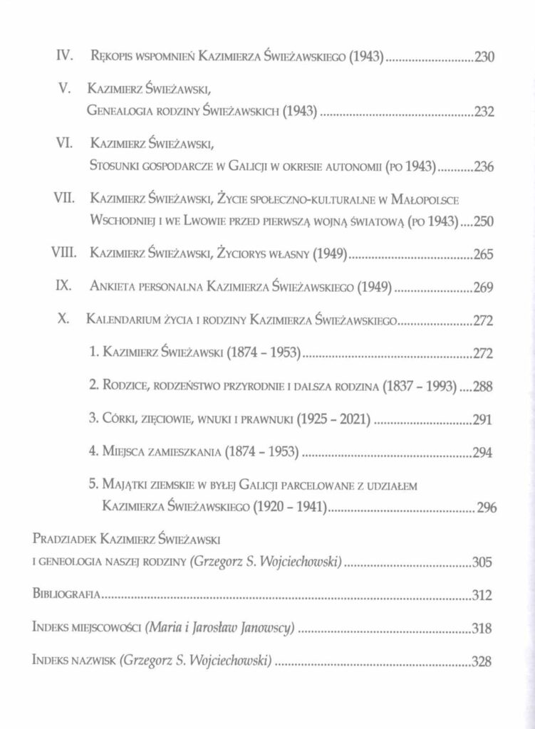 Ukazały się „Wspomnienia galicyjskie” Kazimierza Świeżawskiego herbu Paprzyca. Wielowątkowe, znakomite opracowanie losów i powiązań rodzinnych – nie ograniczone tylko do sztambucha Kazimierza, ale poszerzone przez zespół autorski (w tym Grzegorza Wojciechowskiego od którego otrzymałem egzemplarz sygnalny – dziękuję!) o aneks i bogate opracowania genealogiczne. Dodatki owe są o tyle ważne, że porządkują wiedzę, która nie zawsze jest czytelna w pamiętniku.